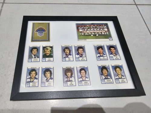Framed Greenock Morton Panini Football Stickers. 1981 Complete Team Set.