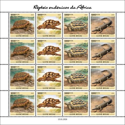 GUINEA BISSAU 2026 STATIONERY CARD - TURTLE TURTLES REPTILES CROCODILE CHAMELEON