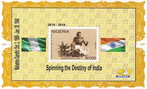 Nigeria: Mahatma Gandhi Imperf umm miniature sheet,, 2019