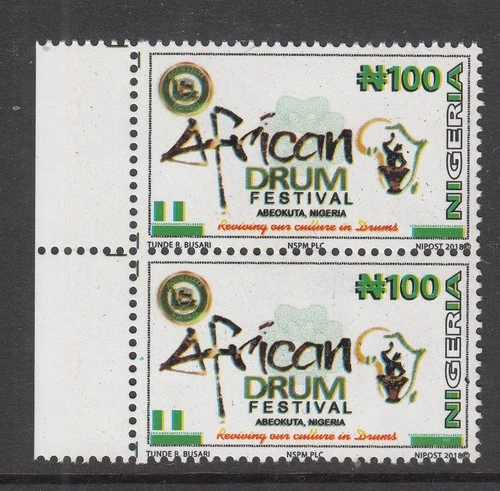 Nigeria: African Drum Festival N100, marginal unmounted mint pair, 2018