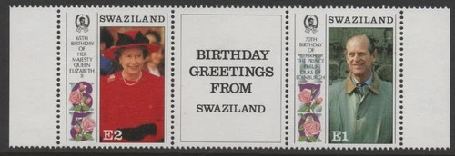 Swaziland 1991 Royal Birthdays se-tenant pair with tab inbetween MUH