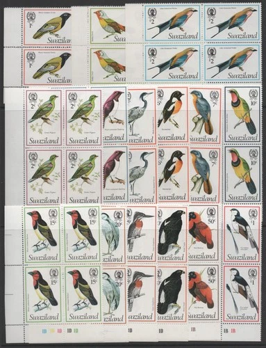 Swaziland 1976 Birds set of 15 in Lovely Corner Blocks of 4 MUH