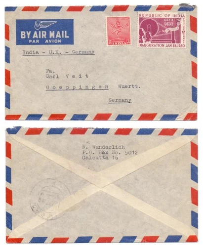 129465 - Unstamped Airmail Receipt - Calcutta to Göppingen