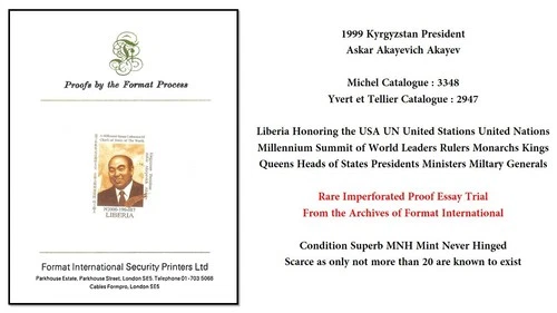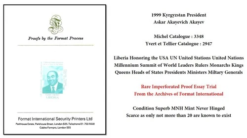 1999 USA UN Liberia Kyrgyzstan President Askar Akayevich Akayev Rare Proof MNH