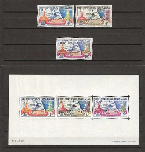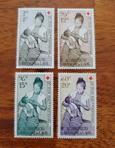 Laos Airmail Stamps Scott #C31-34, 1958 Complete Set, Mint Never Hinged