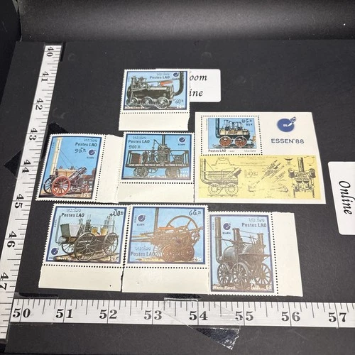 SP10 Laos Set & S/S Essen '88 19th Century Railway Locomotives 1988 MNH-12 Euro