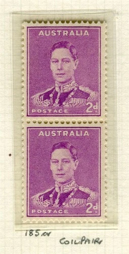 AUSTRALIA; 1938-51 early GVI issue MINT MNH Unmounted 2d. COIL Pair as SG 185a