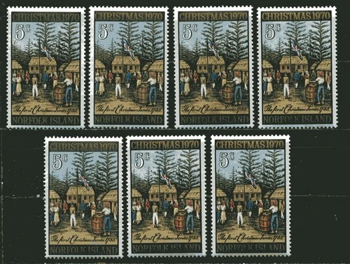 NORFOLK 1970, FIRST CHRISTMAS, SYDNEY BAY 1788, Scott 143 LOT OF 7, MNH