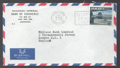 1965 Jamaica Imperial Bank of Commerce Kingston Cover to England