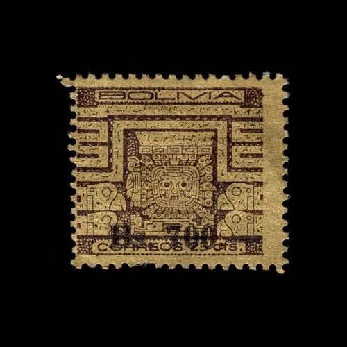 BOLIVIA #C23a RARE Mint Signed - 1930 1b Red Brown & Black w/ Inverted Surch