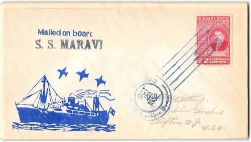 Mailed at Sea, 1952, SS Maravi, Paquetbot, Ship cachet