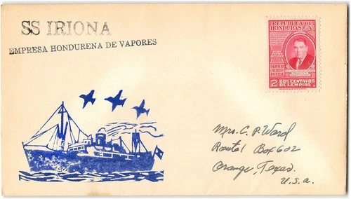 Mailed at Sea, Uncancelled c1952, SS Iriona, Ship cachet