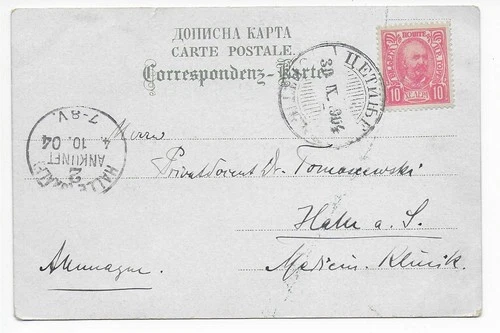 Montenegro: Postcard Cetinje Market Square to Halle a. p. 1904