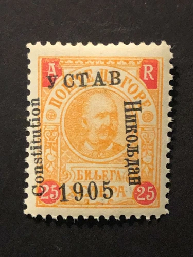 MONTENEGRO 1905 CONSTITUTION, misplaced ovpt., 25 Xe. MNH #426