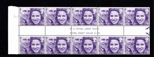SG 941 1973 ROYAL WEDDING MISCUT PRINT UNFOLDED GUTTER PAIR STRIP ERROR MNH