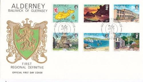 1p 4p 9p 10p 11p 12p GB Alderney Definitive FDC 1983 (133044)