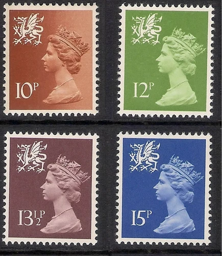 Wales 1982 W37 12 1/2p W42 15 1/2p W51 19 1/2p W61 26p Perf 14 Type I Set MNH