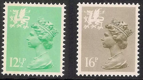 Wales 1984 W37a 12 1/2p & W43a 16p Perf 15x14 Type I Regional Stamps MNH