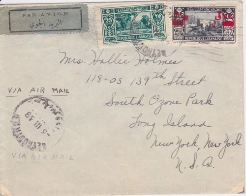 1939 Lebanon Cover Stamps Postmarked Beirut Old Stamps on Envelope Baghdad Iraq