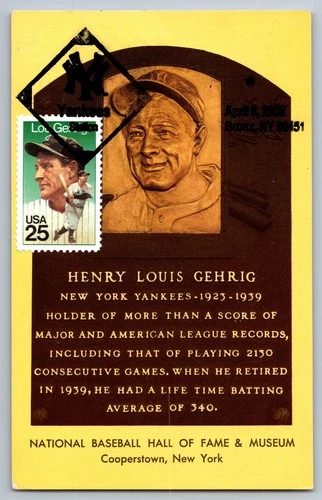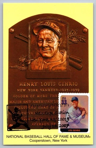 #3408t Legends of Baseball Lou Gehrig HOF Plaque Maxi Card w/Pictorial Cancel