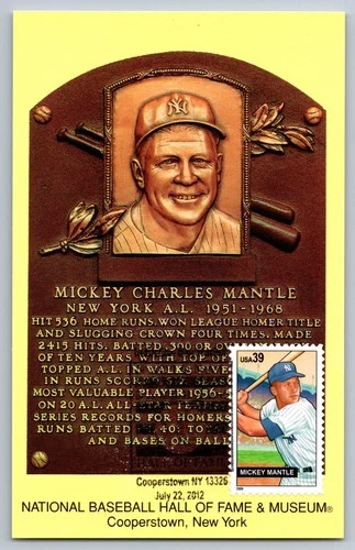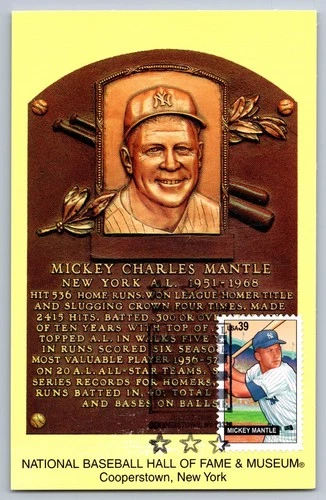 #4083 Baseball Sluggers Mickey Mantle HOF Plaque Maxi Card w/BB HOF Cancel