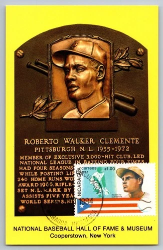 Nicaragua 1984 Roberto Clemente FDC HOF Plaque Maxi Card
