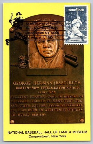 #3184a CTC Babe Ruth HOF Plaque Maxi Card w/Pictorial Baseball HOF Cancel