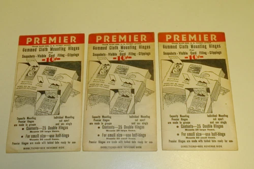 3 x Premier Gummed Cloth Mounting Hinges New Old Stock Stamps 10 cents