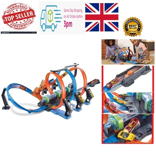 Track Set and Toy Car, Large-Scale Motorized Track with 3 Corkscrew Loops, 3 ...