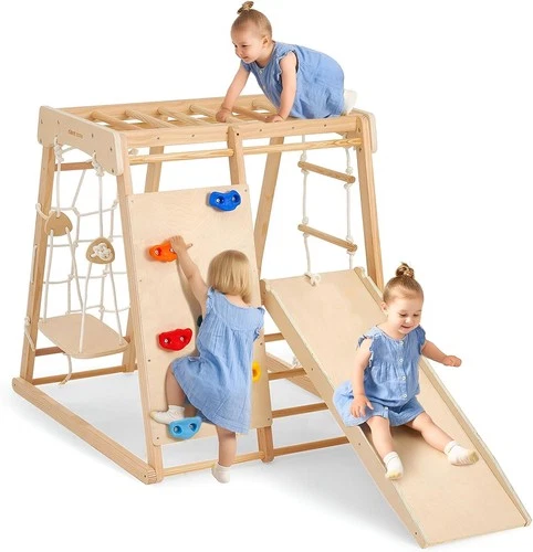 Giant Bean Indoor Climbing Frame Jungle Gym with Slide, Rock Wall, Monkey Bars,