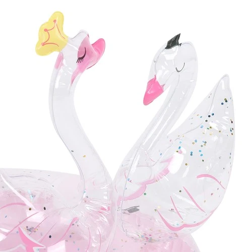 Children Dual Swan Swimming Ring Girl Inflatable Glitter Pool PVC Float Tu EOB