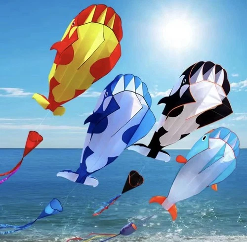 2.2m Large Dolphin Whale Kite 3D Parafoil Soft Power Kite Kids Adults Beach Toy