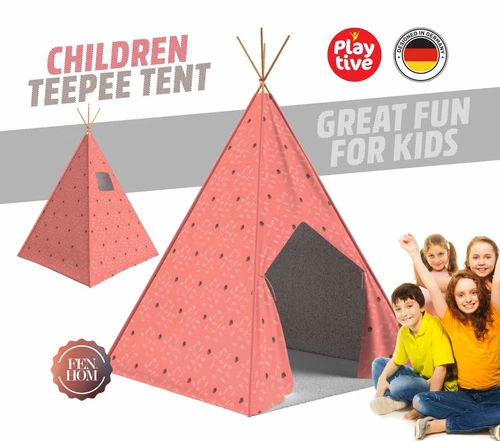 Kids Teepee Tent Premium Quality Indoor Outdoor Sturdy Children Wigwam - Orange