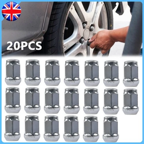 20 PCS ALLOY WHEEL NUTS FOR (M12 x 1.25) 19 MM HEX SILVER LUG STUD BOLT SET