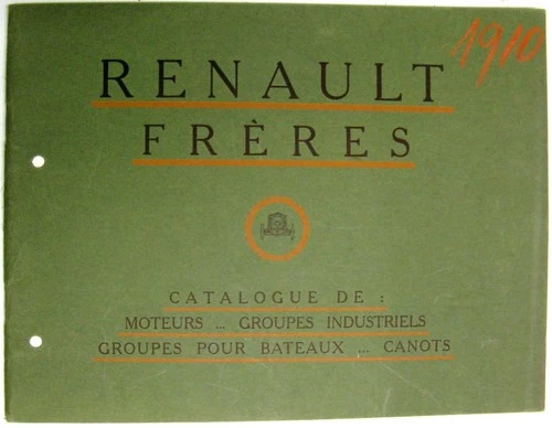 RENAULT FRERES Engines Aero BOAT Stationary Sales Brochure 1910 French Text