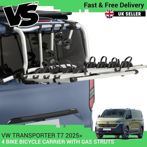 FOR TRANSPORTER T7 2025 TAILGATE 4 BIKE BICYCLE CARRIER C/W GAS STRUTS