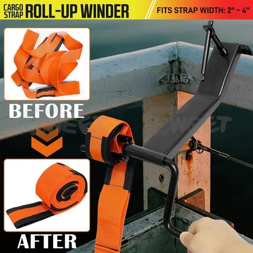 Cargo Tie-Downs Strap Winder Roll-up Flatbed Trailer Winch Straps up to 4" Wide