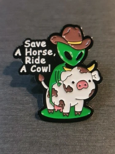 ALIEN UFO SAVE A HORSE RIDE A COWL Funny Pin Badge Patch New High Quality