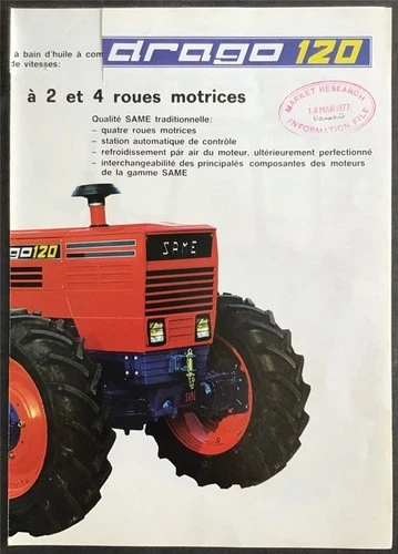 SAME ARAGO 120 TRACTOR Agricultural Sales Brochure c1977 French Text