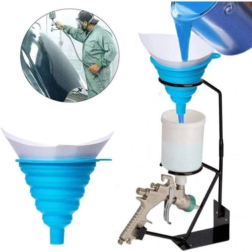 Car Oil Water fuel Silicone Spout Liquid Funnel &100 Paint Strainer Paper Filter