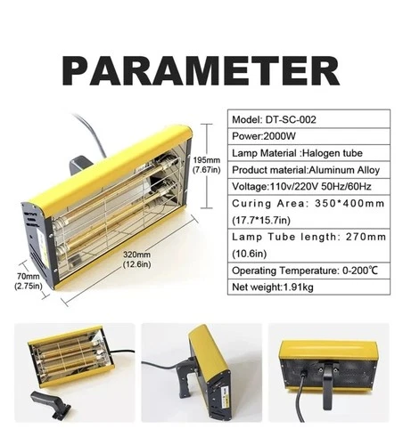 2000W Infrared Paint Curing Lamp for Drying Hot Paint Dryer Heating Lamp Heater