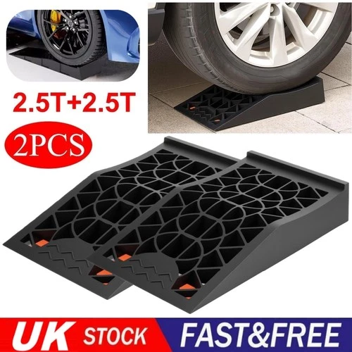 2pc Portable 5 Ton Plastic Car Rubber Curb Ramps Lift Jack Kerb Ramp Heavy Duty