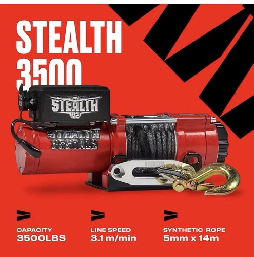 Stealth Winch/Electric Winch 3500lb/1588kg 12v Wireless Synthetic Rope