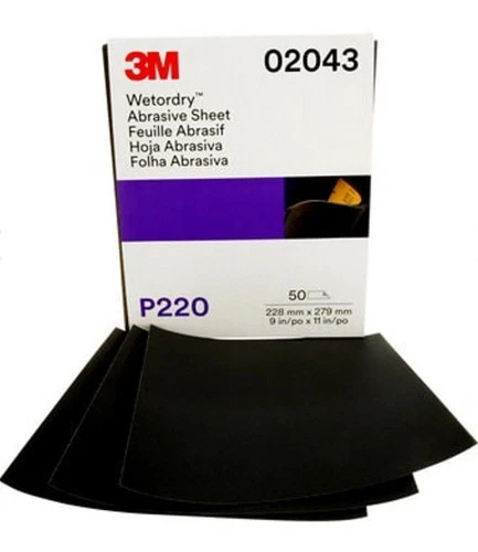 3M 2043 Wet/Dry Abrasive Sandpaper Sheet 02043 Paint Repair 220 Grit (50 Count)