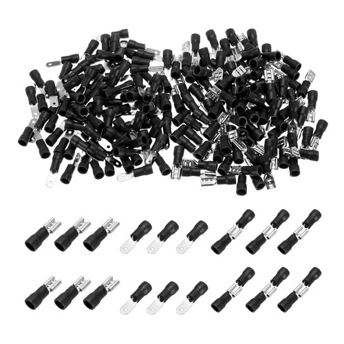 100 Set Heat Shrink Wire Terminal, 16-14AWG Black Insulated Crimp Terminals