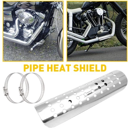 Exhaust Muffler Pipe Heat Shield Cover Heel Guard Motorcycle Chrome Universal UK