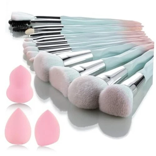 111 Pink Blue Gradient Makeup Brushes and Makeup Sponges Set 18Pcs/Set blue