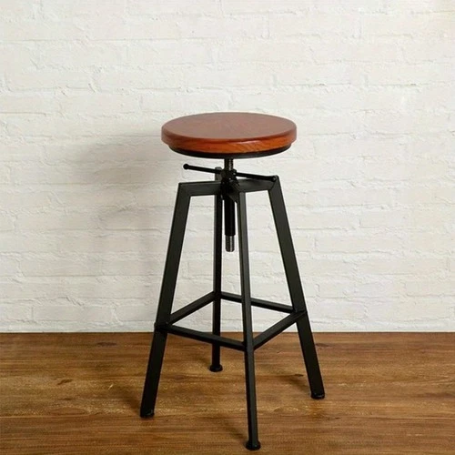 1pc Industrial Bar Stool Adjustable Metal Swivel Chairs Round Wooden Seat