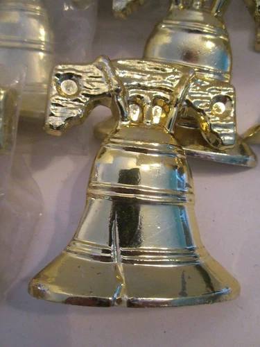 Lot of 14 metal gold tone Liberty Bell trophy parts. 2-1/2" tall. Emblems