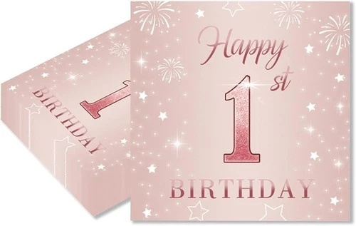 20 Pink Napkins 1st Birthday Girls Decorations 33x33cm Paper Party Supplies